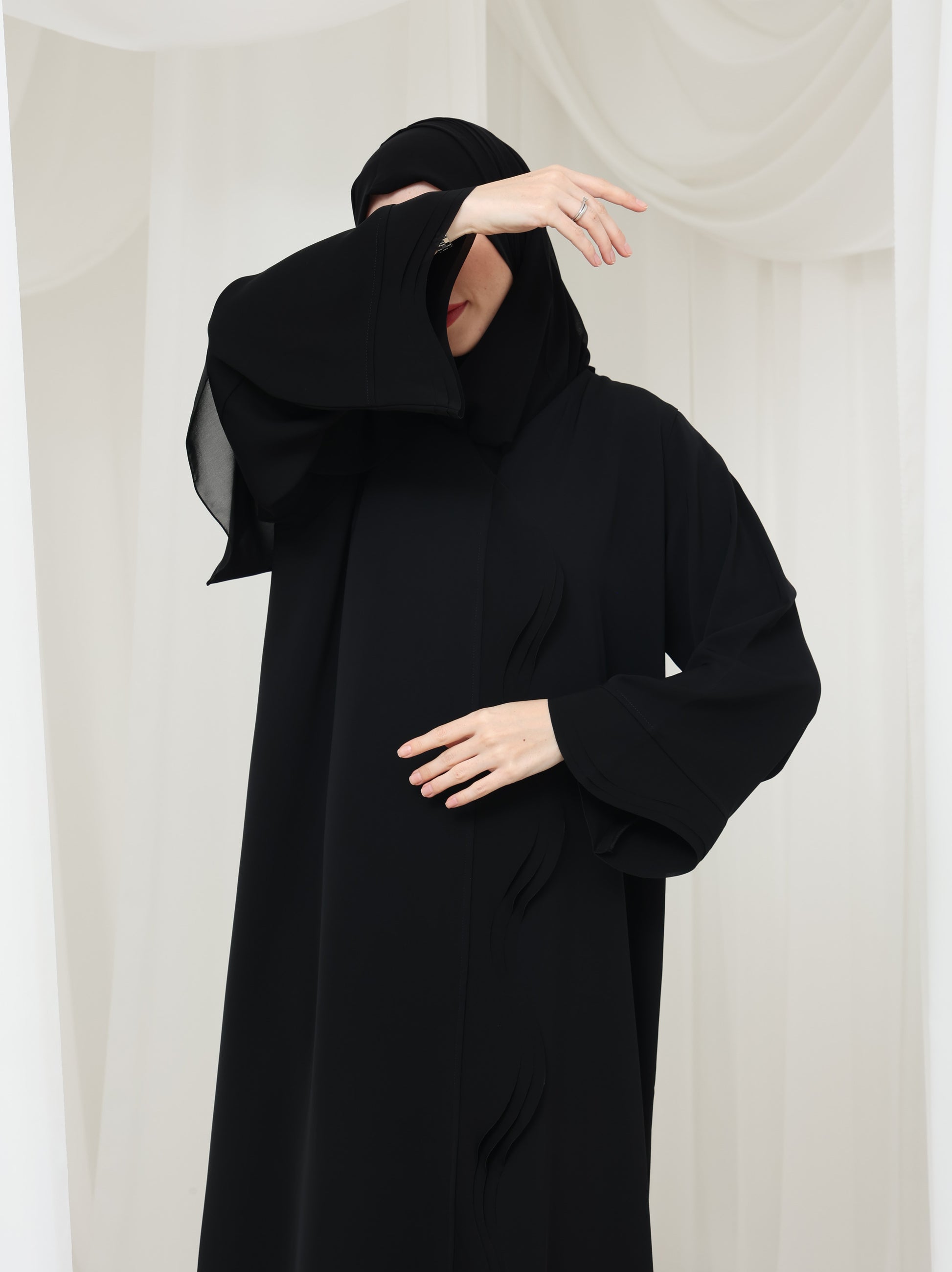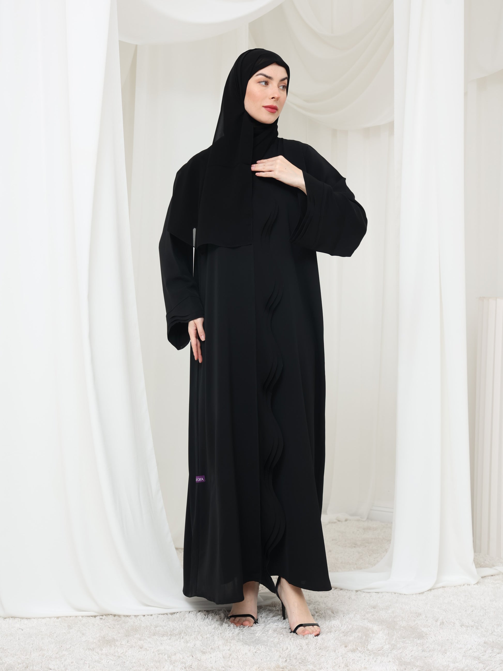 Kiyora's Wavy Abaya - crafted from Korean Nida Fabric, designed with waves detailing.